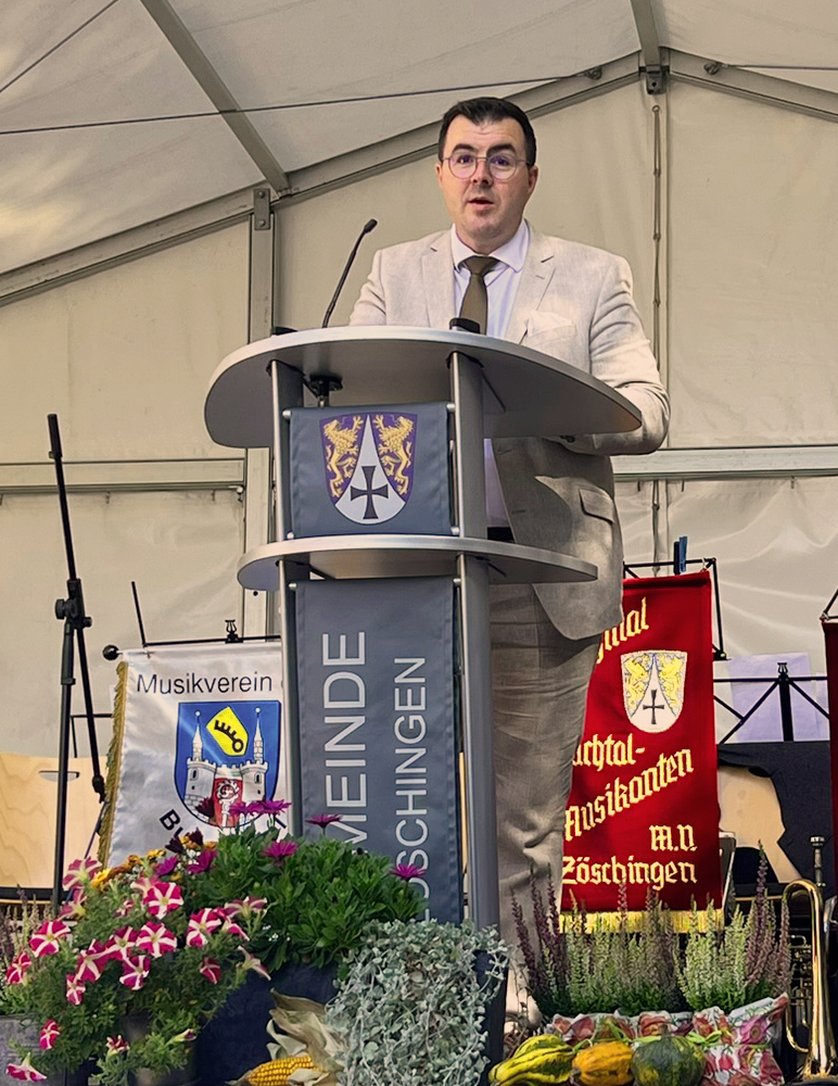 Zur feierlichen Eröffnung der Ortsdurchfahrt luden der Landkreis Dillingen und die Gemeinde Zöschingen gemeinsam ein, denn es war auch ein gemeinsames Projekt. Die Bauleitung hatte die Tiefbauverwaltung des Landkreises inne, der für die Instandsetzung der Fahrbahn der Kreisstraße rund eine halbe Million Euro zur Verfügung stellt. Die Gemeinde engagiert sich alleine für die Straße mit über einer dreiviertel Million Euro. Weitere knapp zwei Millionen Euro übernimmt der Freistaat Bayern durch einen Fördersatz von 70 Prozent nach dem Gemeindeverkehrsfinanzierungsgesetz. „Für unsere kleine Gemeinde stellte die Finanzierung eine Herausforderung dar, die wir fast vollständig aus den Rücklagen stemmen“, resümierte Bürgermeister Tobias Steinwinter bei der Eröffnung. „Lediglich die Kosten für die Erneuerung der Wasserleitungen müssen über eine Kreditaufnahme bestritten werden. Wenn man alles zusammenrechnet, wurden rund 5 Millionen Euro investiert. Nach Abzug der Förderungen, die auch aus Mitteln der Dorferneuerung mit einem Fördersatz von 50 Prozent und der Wasserwirtschaft kommen, verbleiben in Summe rund 2,1 Millionen Euro für die Gemeinde Zöschingen. Gut investiertes Geld, denn das Ergebnis zeigt uns: Es hat sich gelohnt.“ Er bedankte sich bei den Bürgerinnen und Bürgern für ihre Geduld während der Baumaßnahmen, da die Bauzeit mit Einschränkungen verbunden gewesen sei.