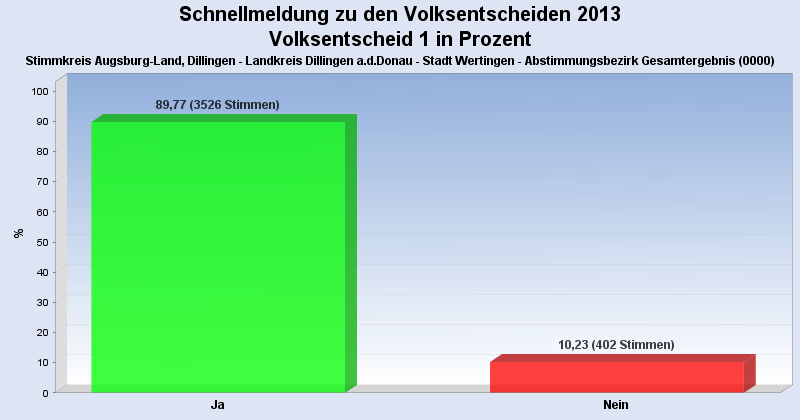 | 1 | Volksentscheid 1 | 3.526 | 89,77% | 402 | 10,23% | 3.928 | 364 |