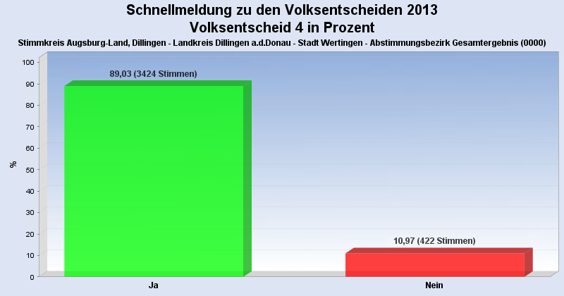 | 4 | Volksentscheid 4 | 3.424 | 89,03% | 422 | 10,97% | 3.846 | 446 |
